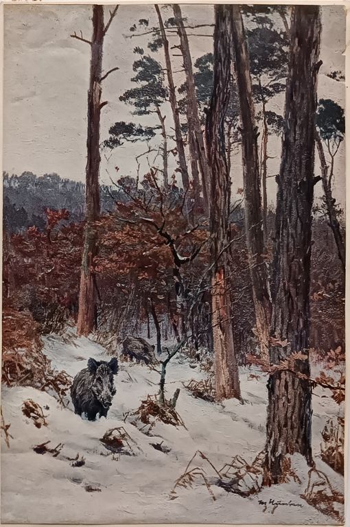 "Кабаны в зимнем лесу" фототипия 1920-е годы