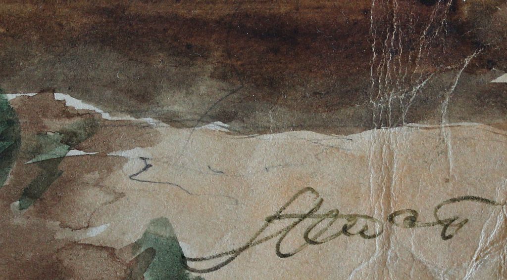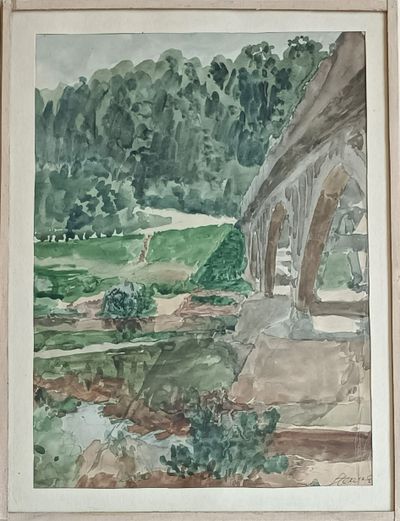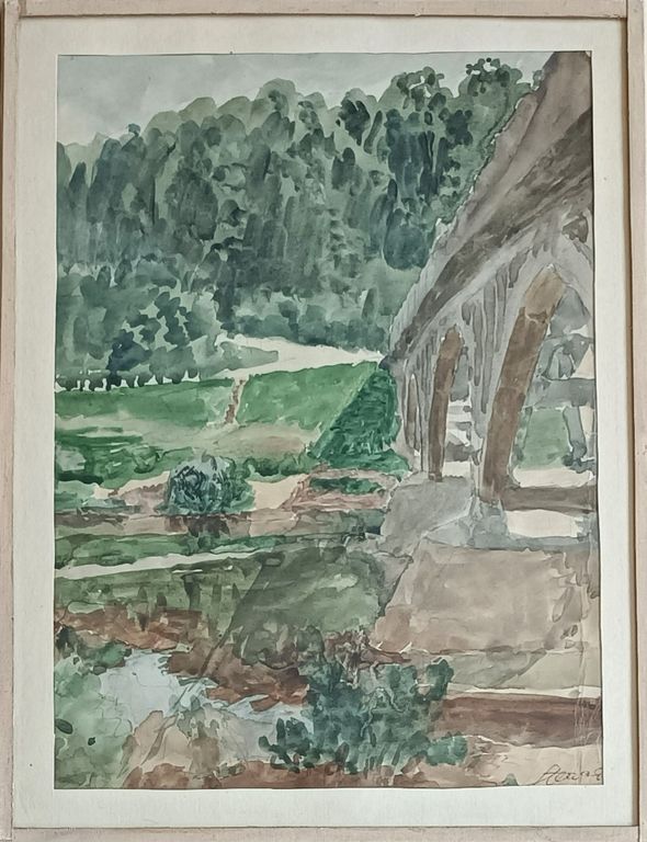 "Сигульда. Мост через реку Гауя" бумага акварель Стасенко 1970-е годы