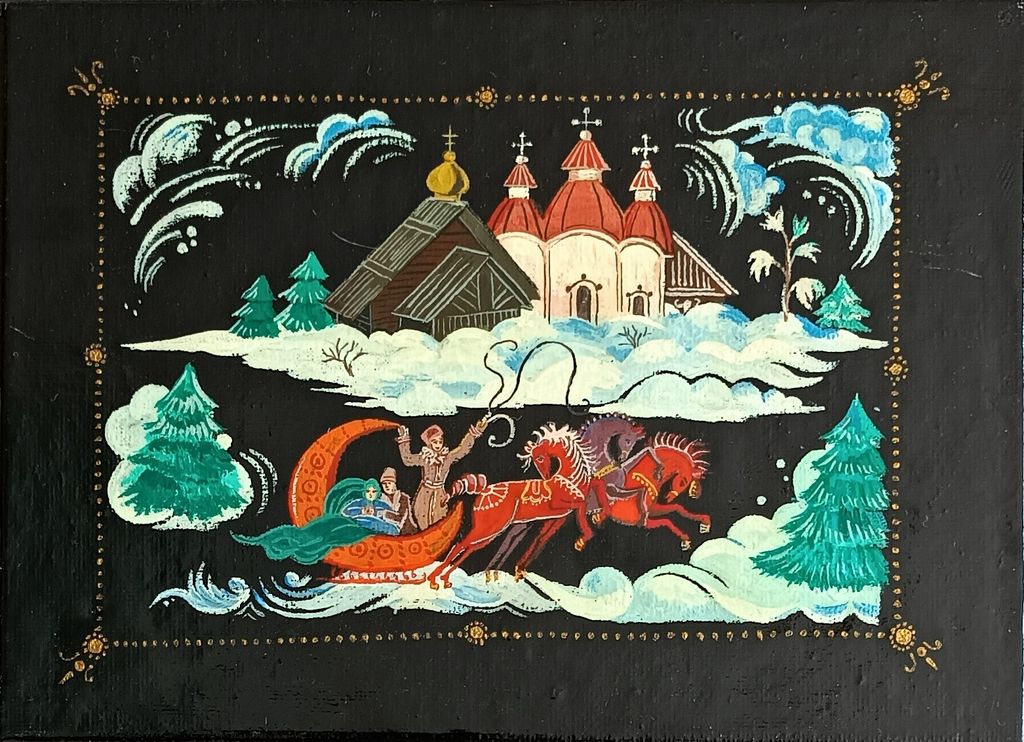 "Тройка" холст на картоне лаковая миниатюра Босова И. 2010-е годы