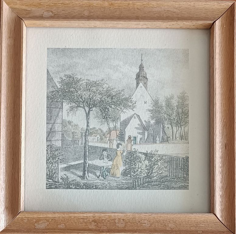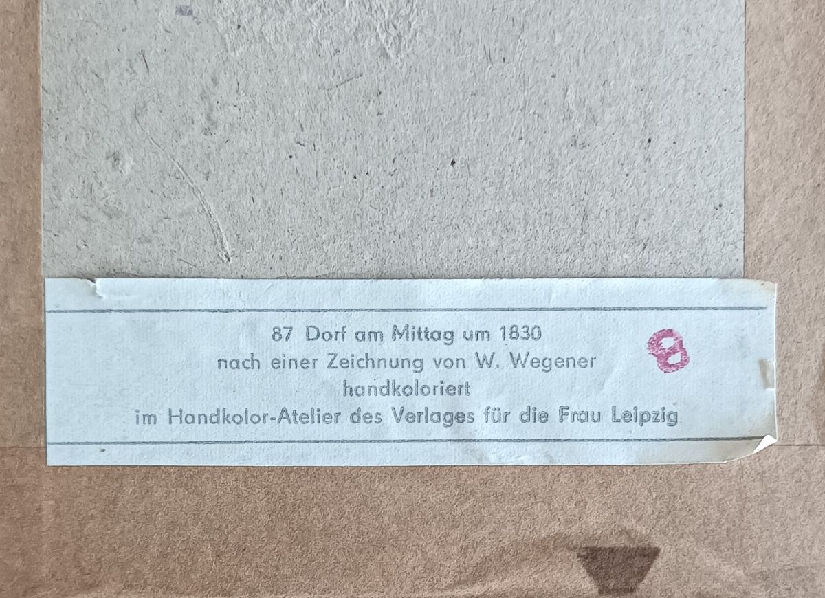 87 Dorf am Mittag um 1830 nach einer Zeichnung von W. Wegener handkoloriert im Handkolor-Atelier des Verlages fur die Frau Leipzig