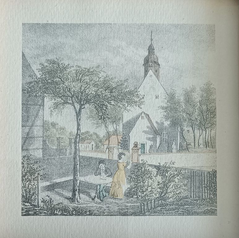 87 Деревня в полдень около 1830 г. раскрашена вручную по рисунку В. Вегенера в мастерской ручной раскраски издательства для фрау Лейпциг.