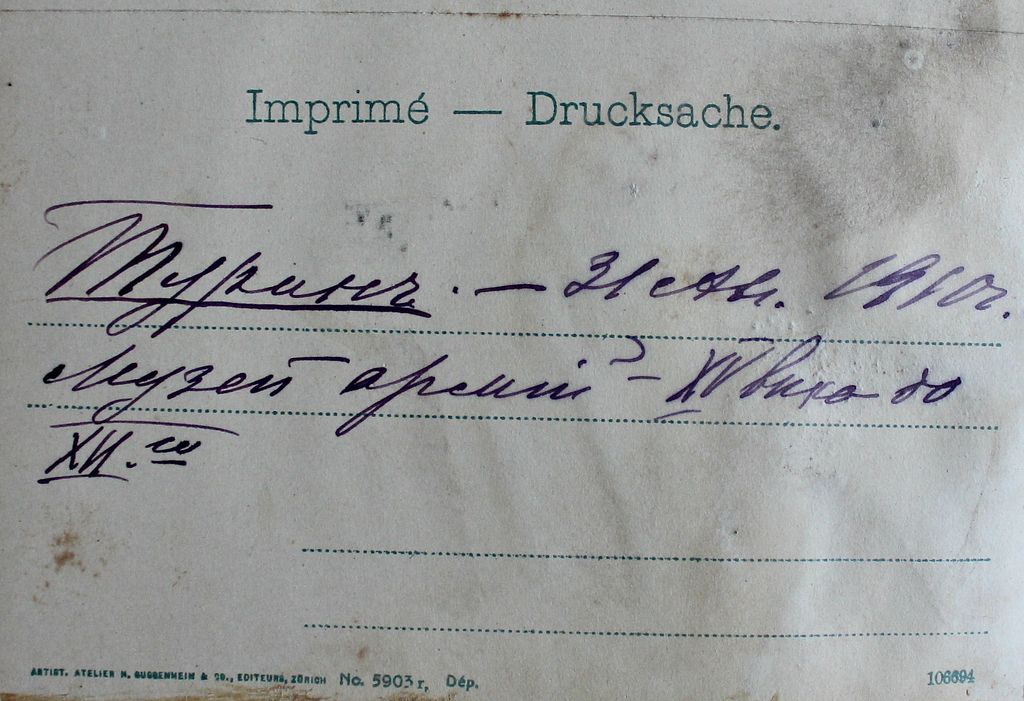 "Турин. Музей армий" литография M. Guggenmein 1910 год