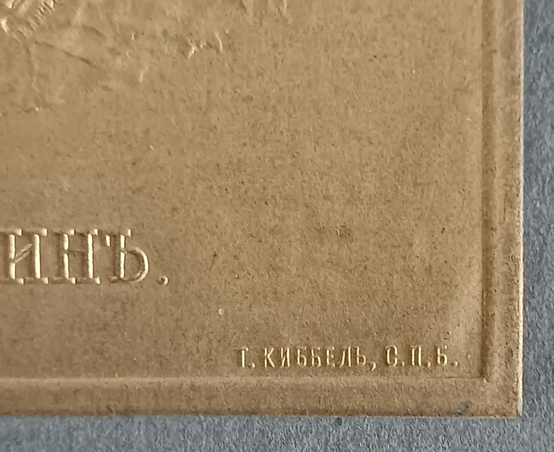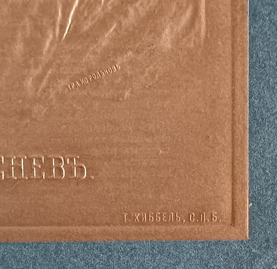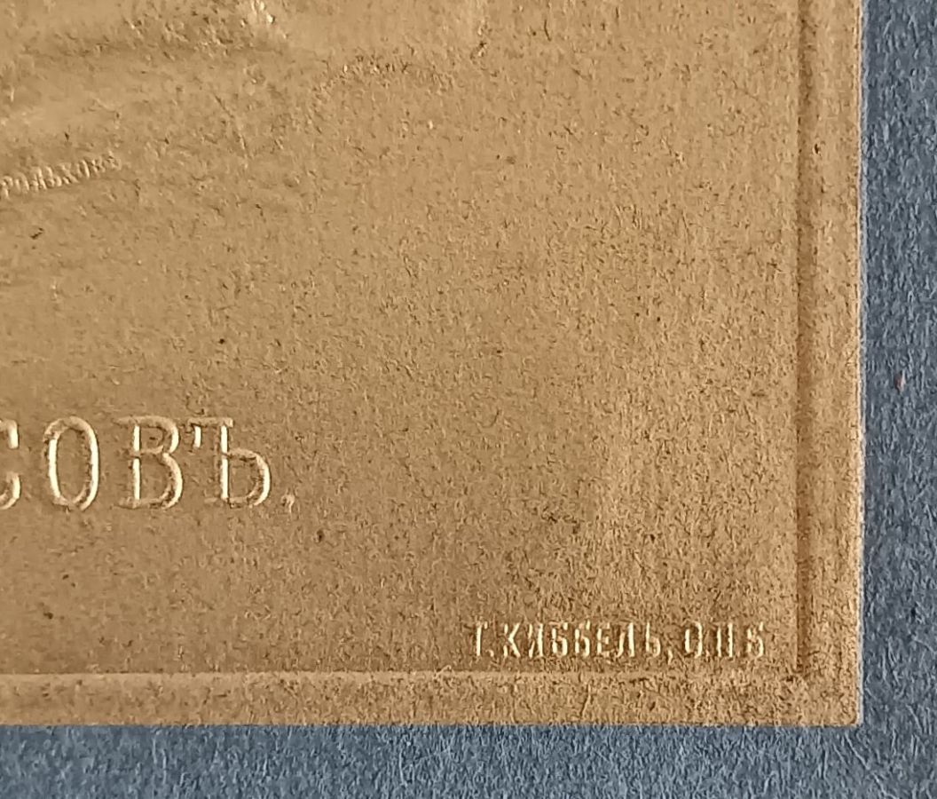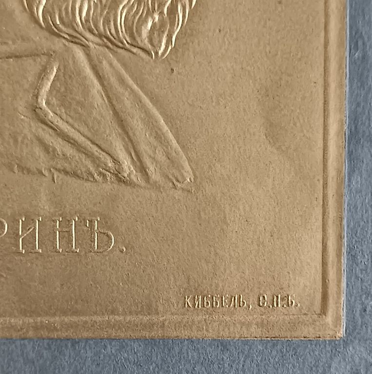 изданный Теодором Киббелем (Федор (Теодор-Матиас) Федорович Киббель) в 1900-х годах. Благодаря объемному тиснению потрет представляет собой неглубокий детализированный рельеф на золотом фоне. Типологически портретная галерее литераторов, созданная Тедором Киббелем восходит к собирателю картин Павлу Михайловичу Третьякову, который для своей знаменитой галереи заказывал портреты деятелей русской культуры ведущим художникам. В галерее П.М. Третьякова впервые был создан программный "зал славы" русской литературы, листы серии Теодора Киббеля продолжают эту традицию.