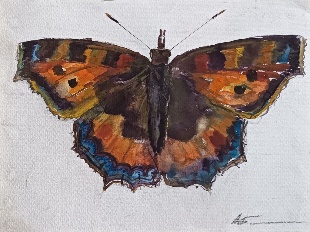 "Бабочка Крапивница" бумага акварель 1970-е годы