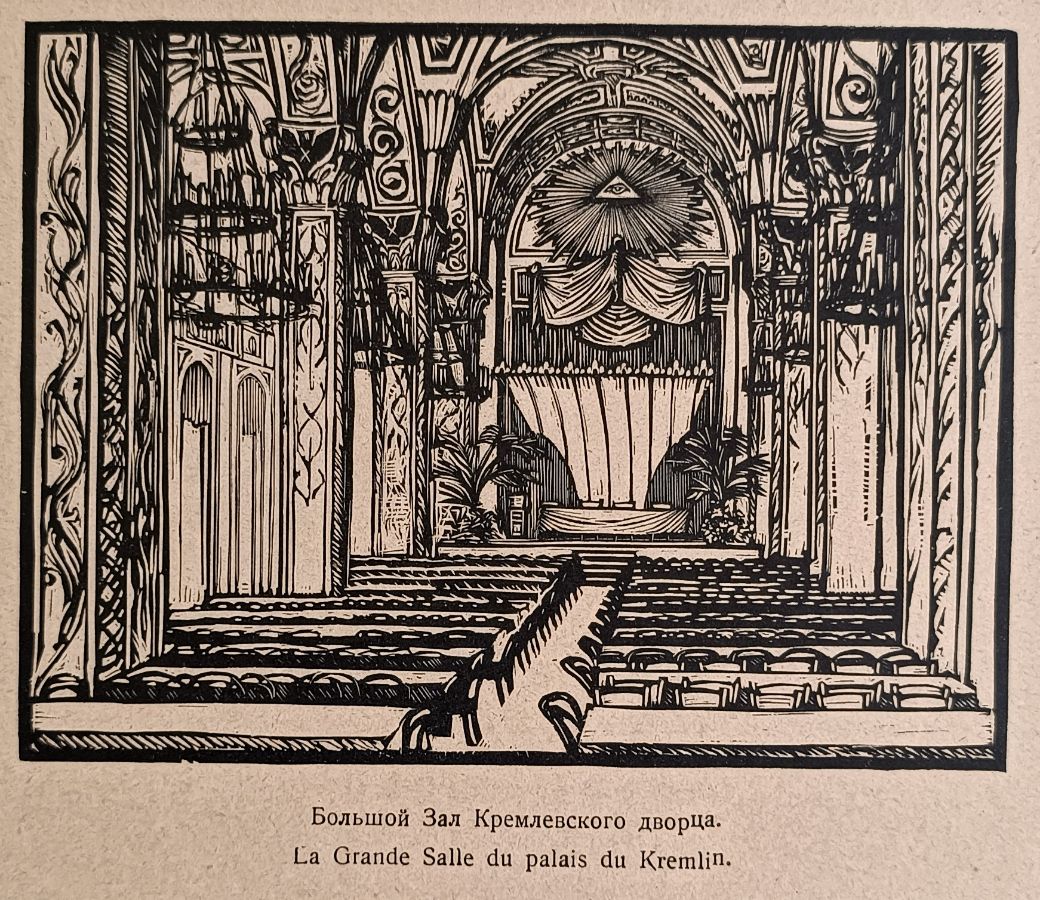 "Большой Зал Кремлёвского дворца" ксилография Павлинов П.Я. 1921 год