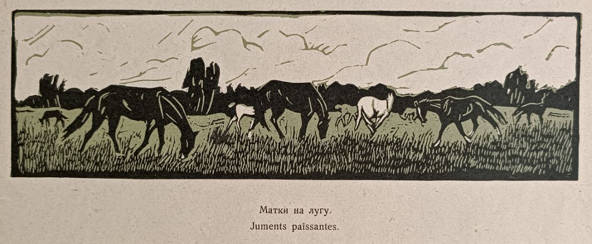 "Московский отдел сельского хозяйства. Конный завод" "Матки на лугу" линогравюра Образцов С.В., Артюхова М.Я. 1921 год