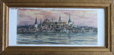 размер 29х13 см на листе 36х15,5 см в раме под стеклом 40х19,5 см