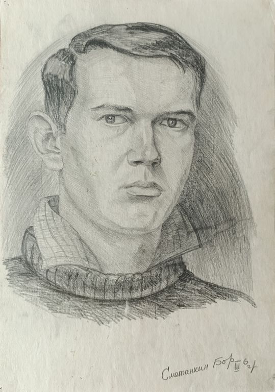 "Портрет" бумага карандаш Сметанкин Борис 1968 год