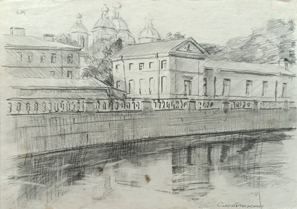 "Набережная" бумага карандаш Сметанкин Борис 1968 год