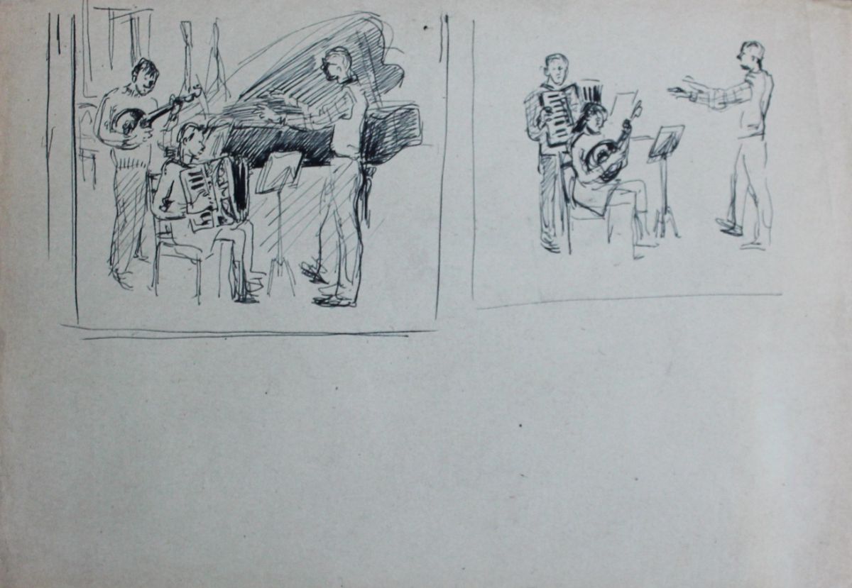 "Урок музыки, детсад" бумага карандаш Кондратова О.Е. 1973 год