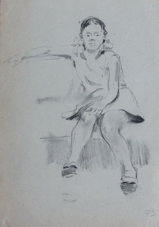 2"Портрет девочки" бумага уголь Кондратова О.Е. 1973 год