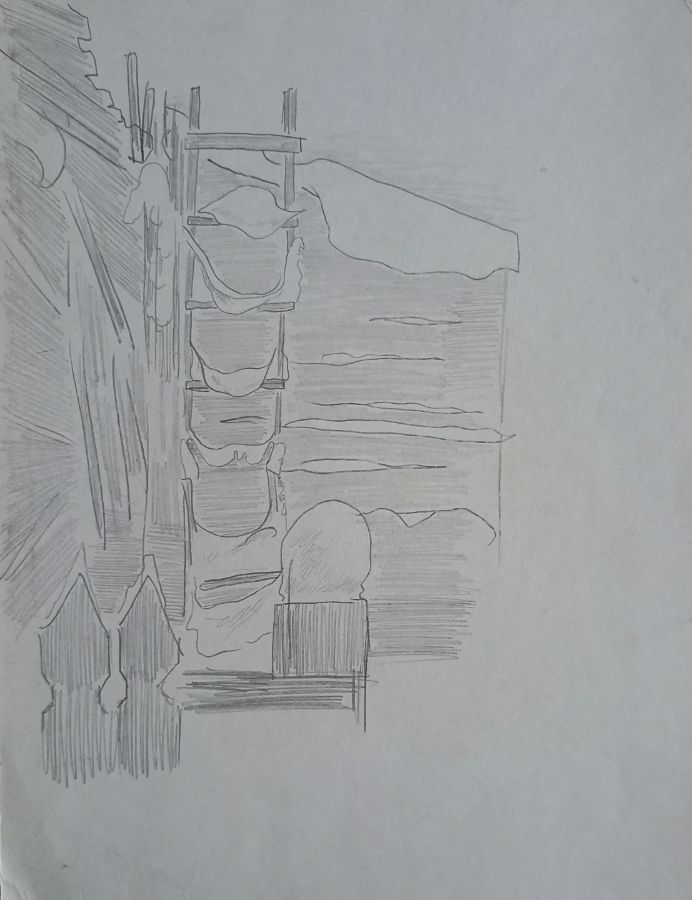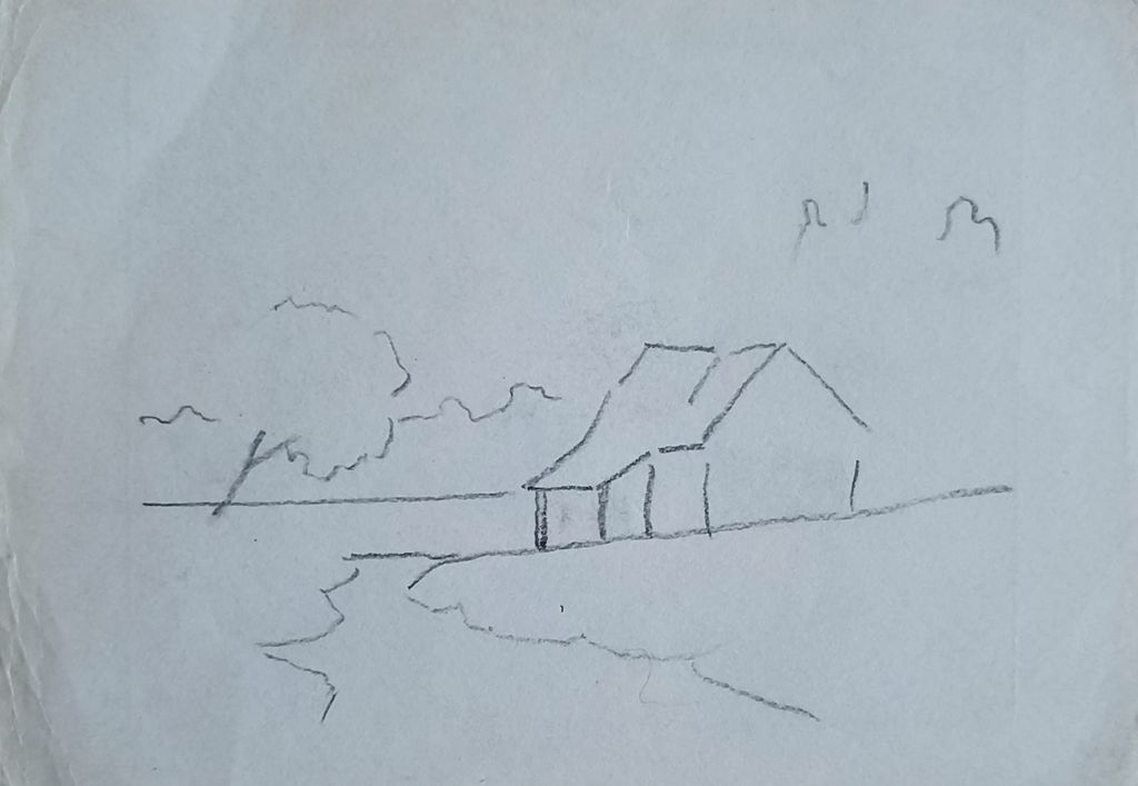 "Сельский пейзаж" бумага карандаш Шкурко В.П. 1963 год