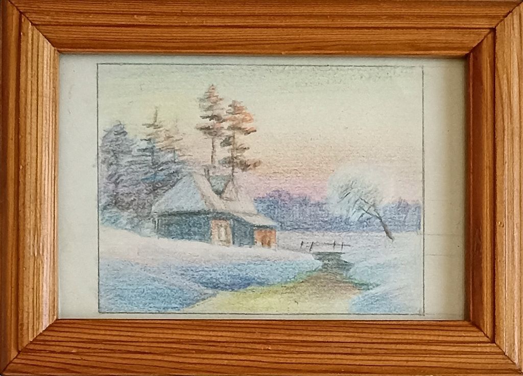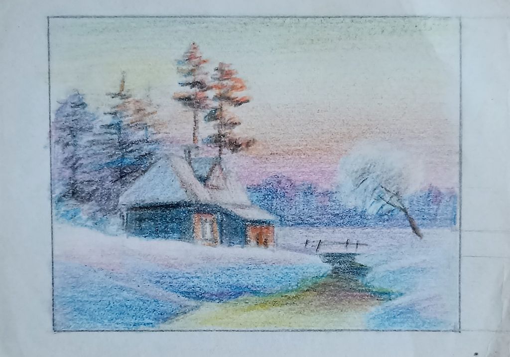 "Зимний пейзаж" бумага пастель Шкурко В.П. 1980-е годы