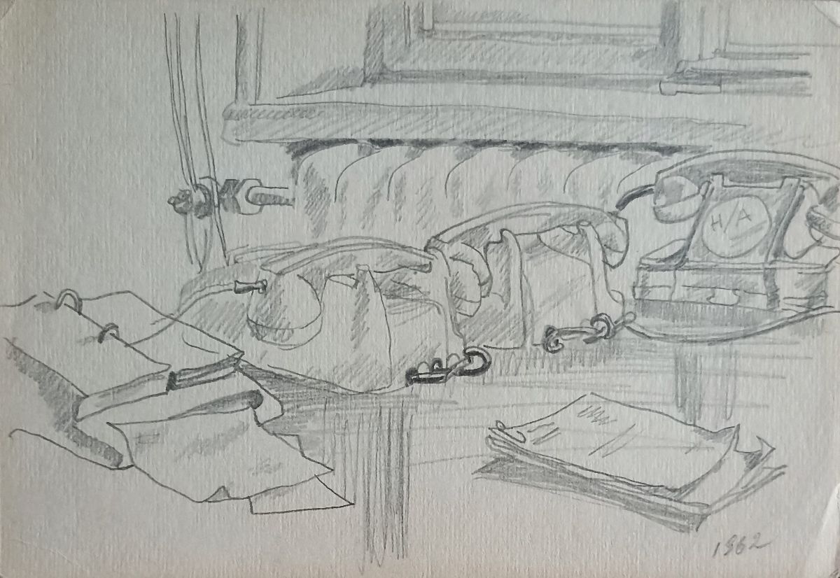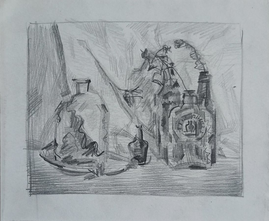 "Натюрморт с посудой" бумага карандаш Шкурко В.П. 1960-е годы