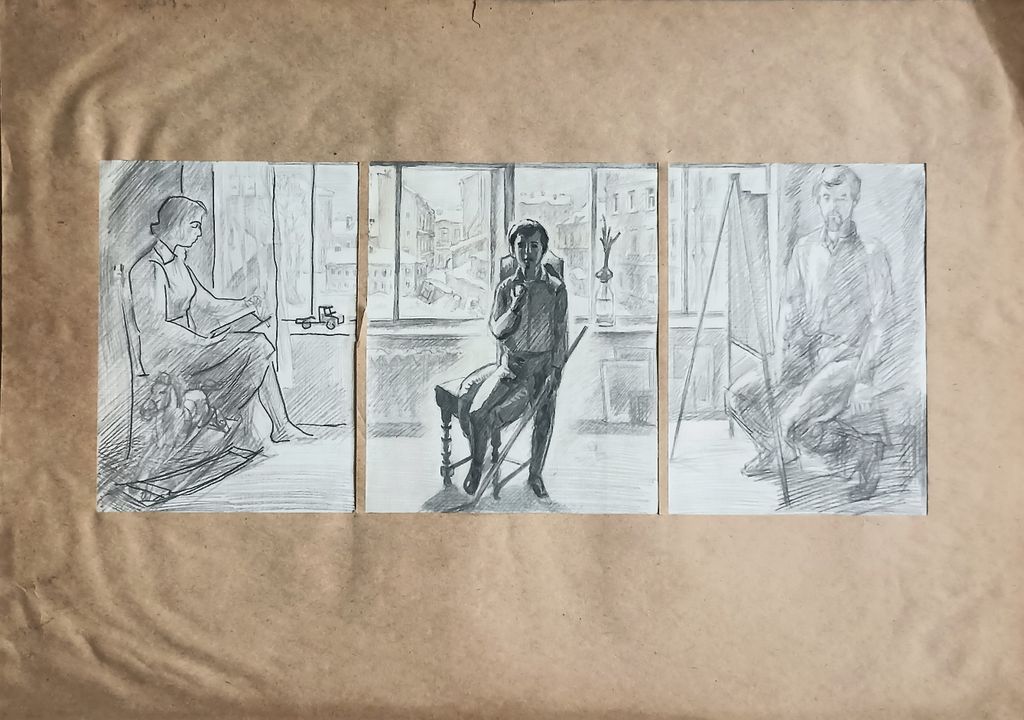 "Семейный портрет" бумага карандаш Шкурко В.П. 1970-е годы