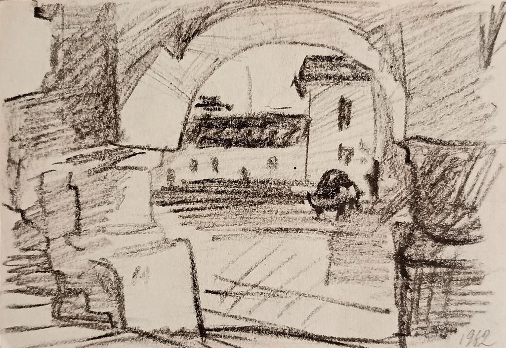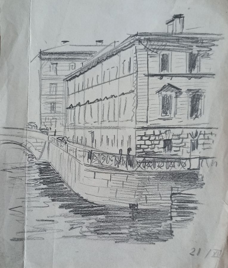 "Городской пейзаж, канал" бумага карандаш Шкурко В.П. 1960-е годы