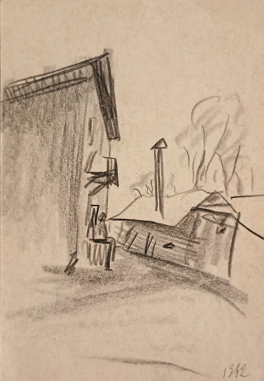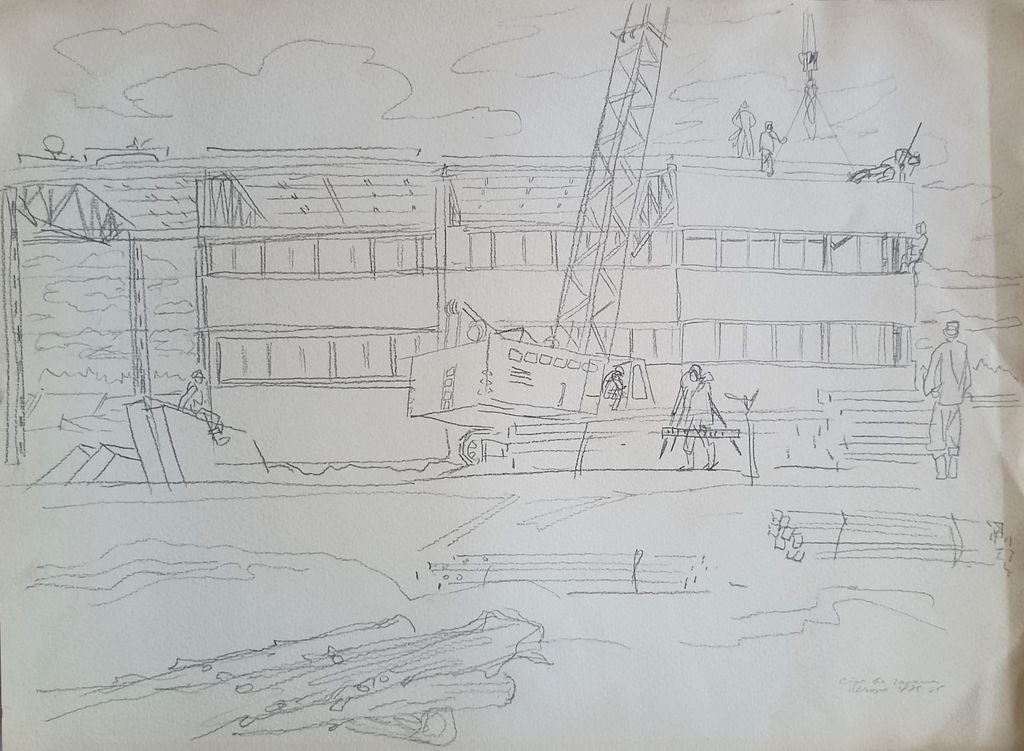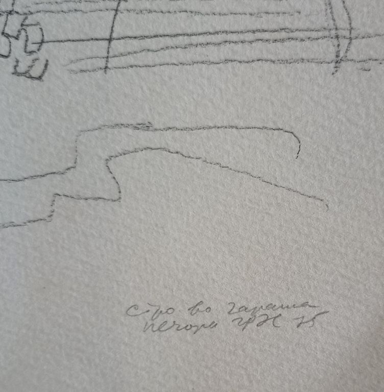 "Печёра. Строительство гаража" бумага карандаш Шкурко В.П. 1975 год