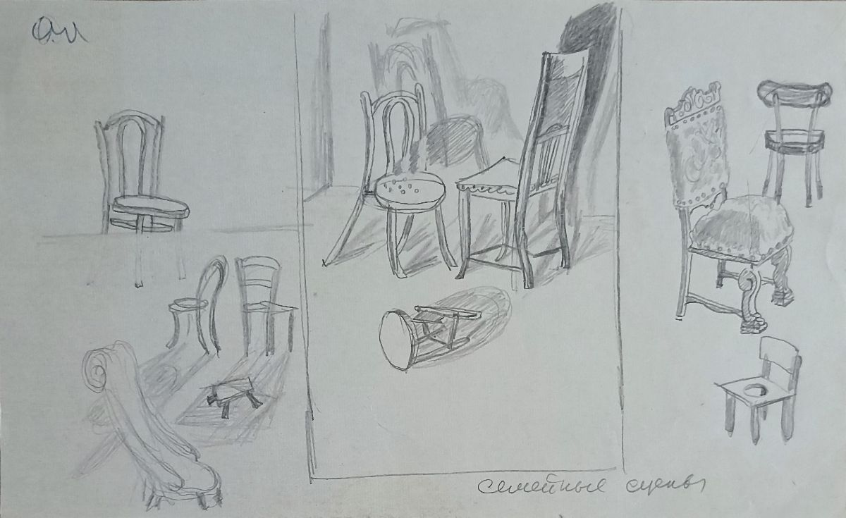 "Семейные сцены" бумага карандаш Шкурко В.П. 1970-е годы