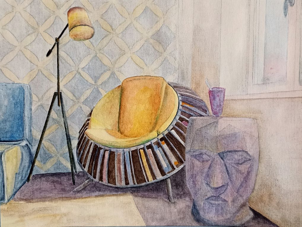 "Интерьер, Кресло, Лампа" бумага акварель Федосеева Е.С. 2010-е годы