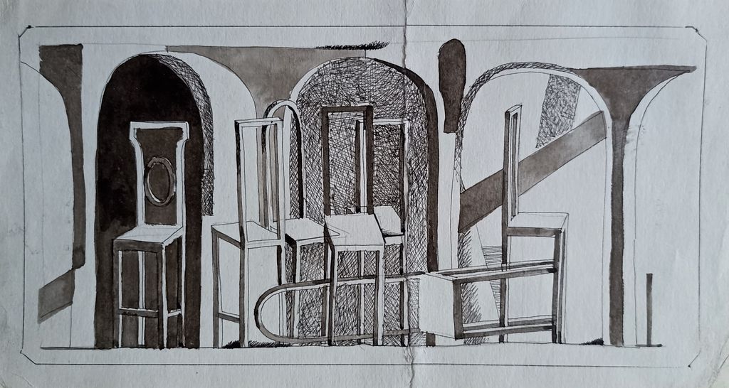 "Стулья" бумага тушь, акварель Кравцов Г.Т. 1970-е годы