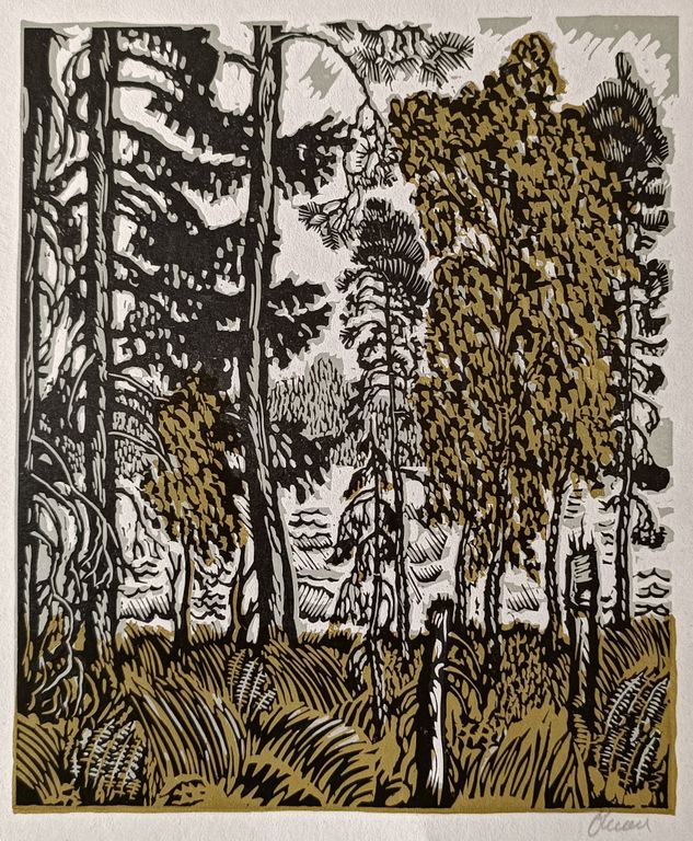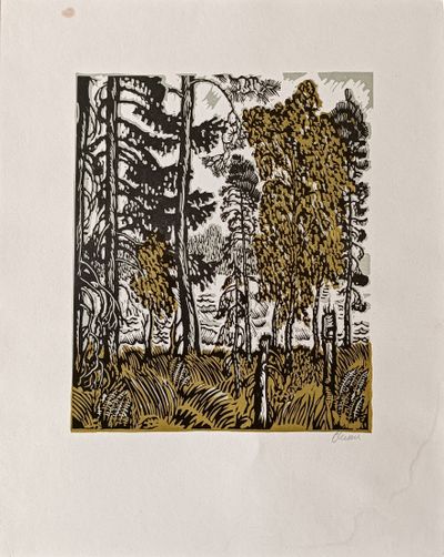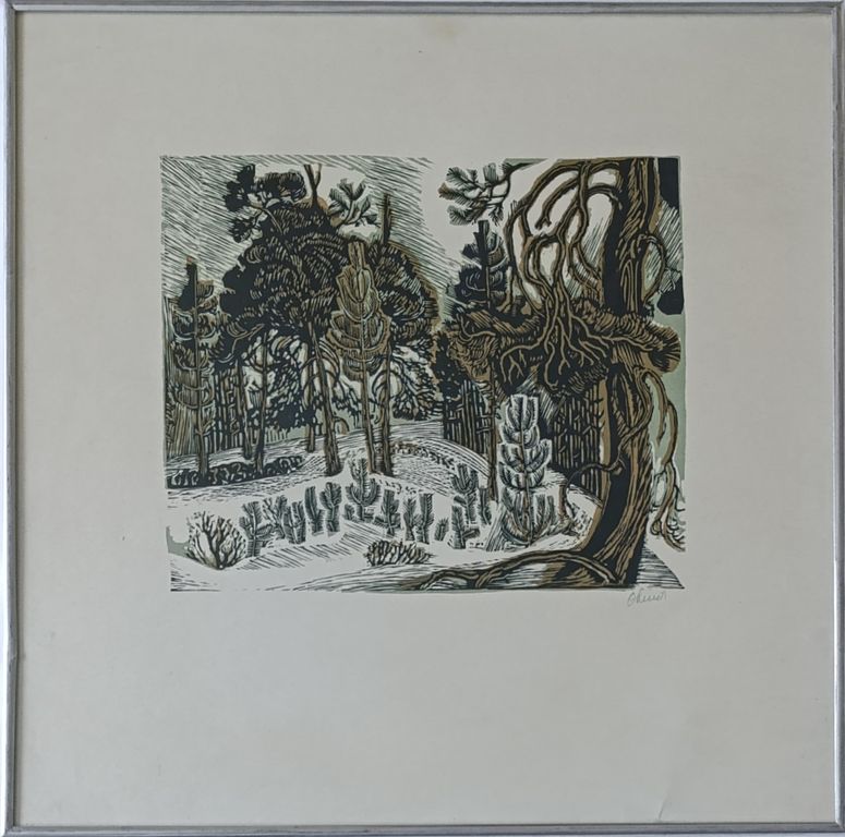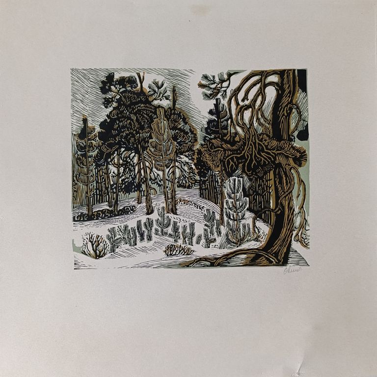 "Зимний лес" линогравюра Овсянников А.Л. 1990 год