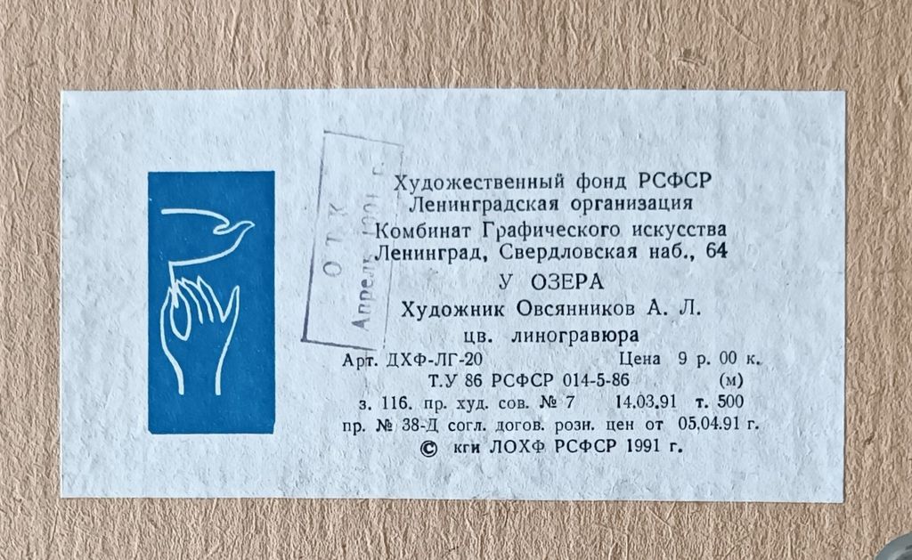 "У озера" линогравюра Овсянников А.Л. 1991 год