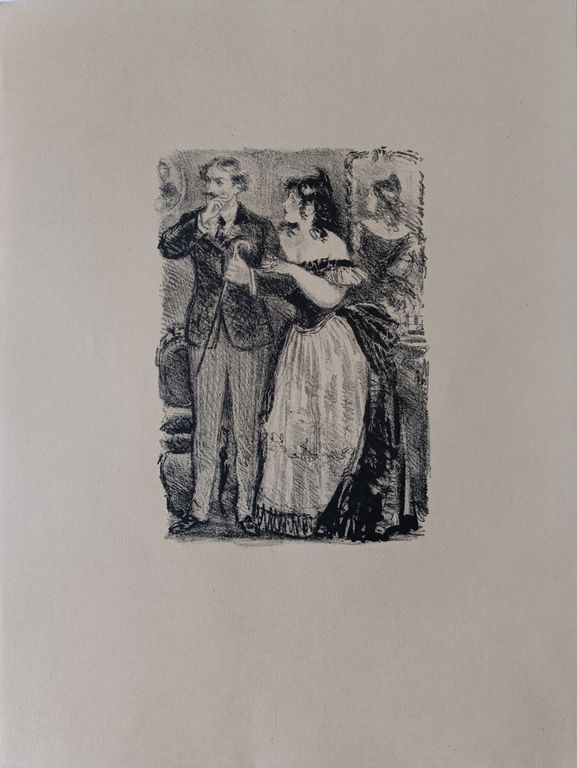 иллюстрация к роману Ги Де Мопассана "Милый друг" 1935-1936 год. Клотильда де Марейль и Жорж Дюруа.