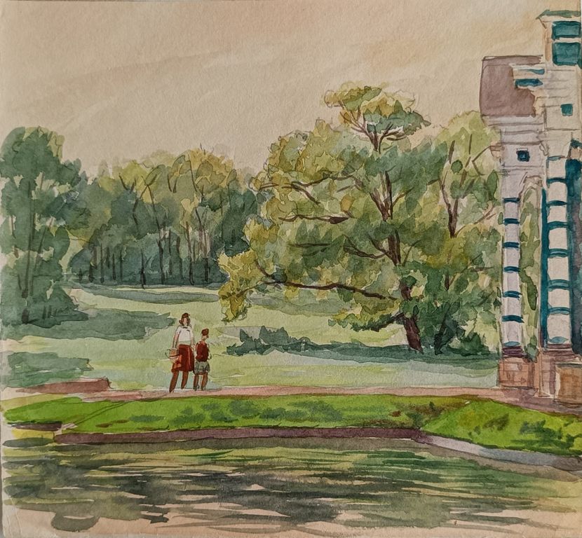 "г. Пушкин" бумага акварель Попенков Я.И. 1992 год