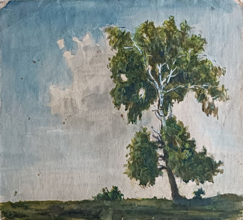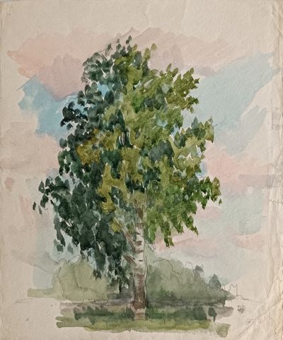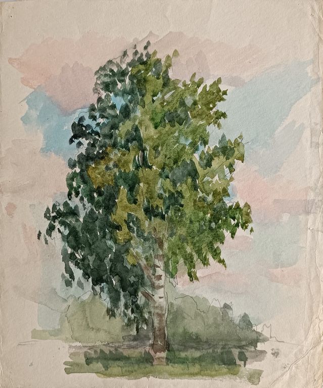 "Берёза на опушке" бумага акварель Попенков Я.И. 1980-е годы