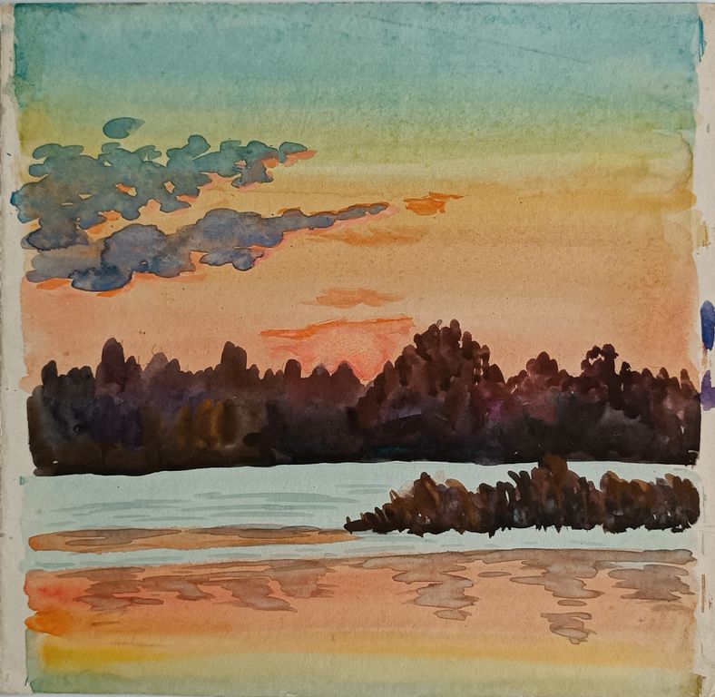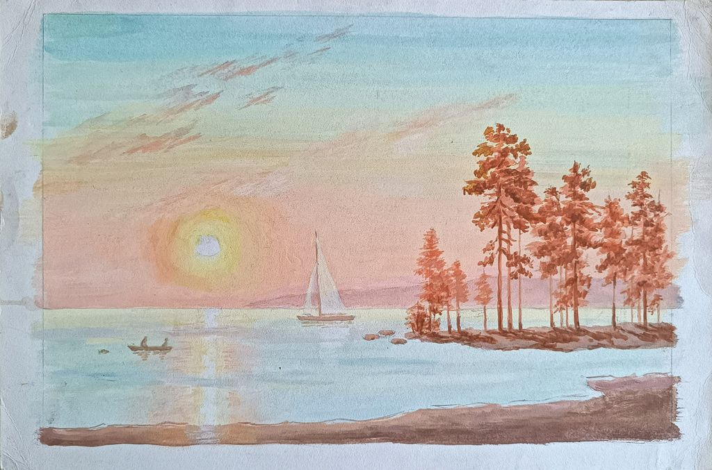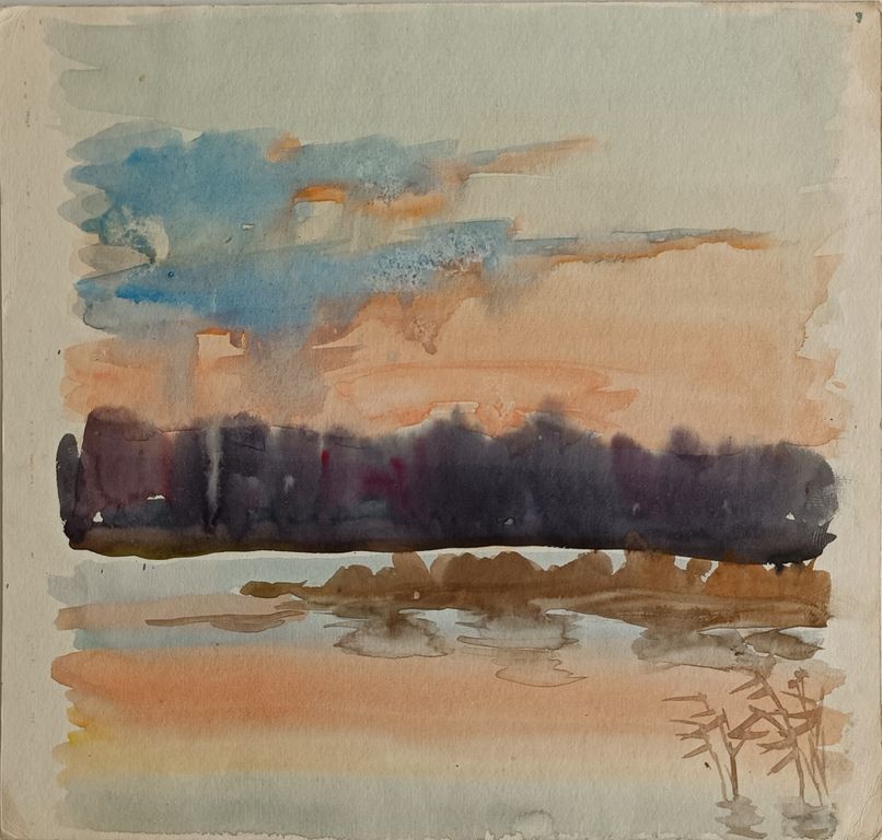 "Закат" бумага акварель Попенков Я.И. 1990-е годы