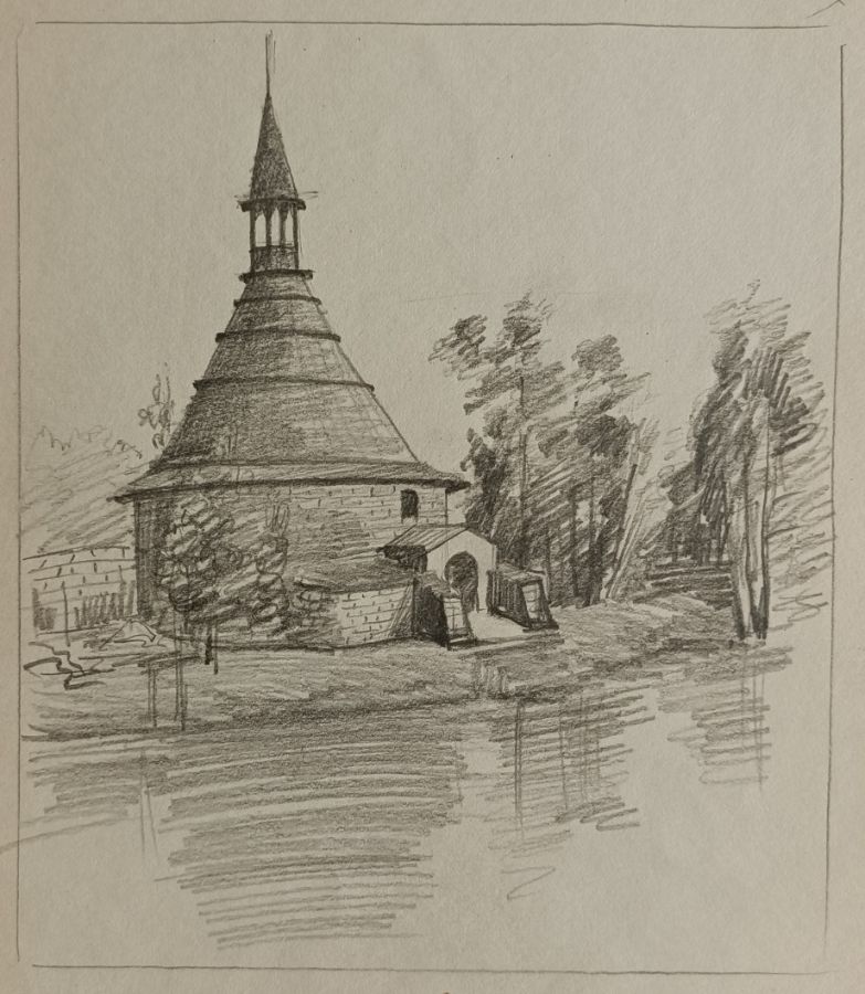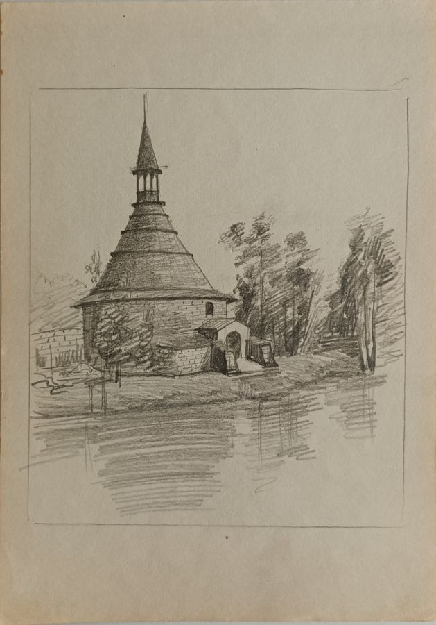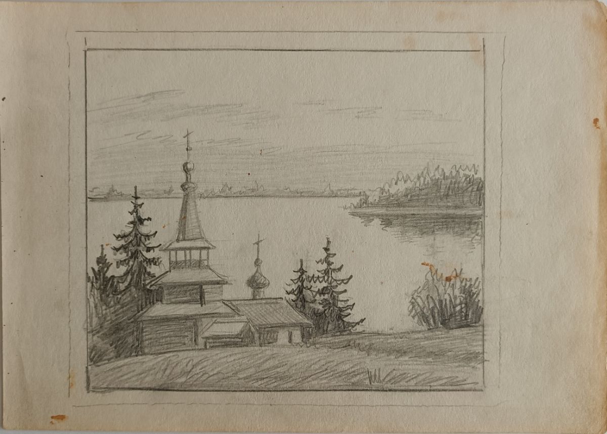 "Деревянный храм" бумага карандаш Попенков Я.И. 1980-е годы