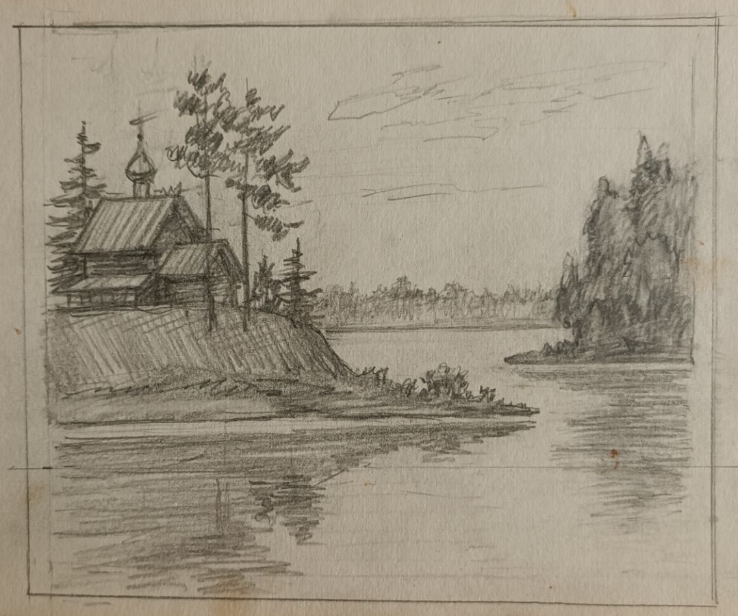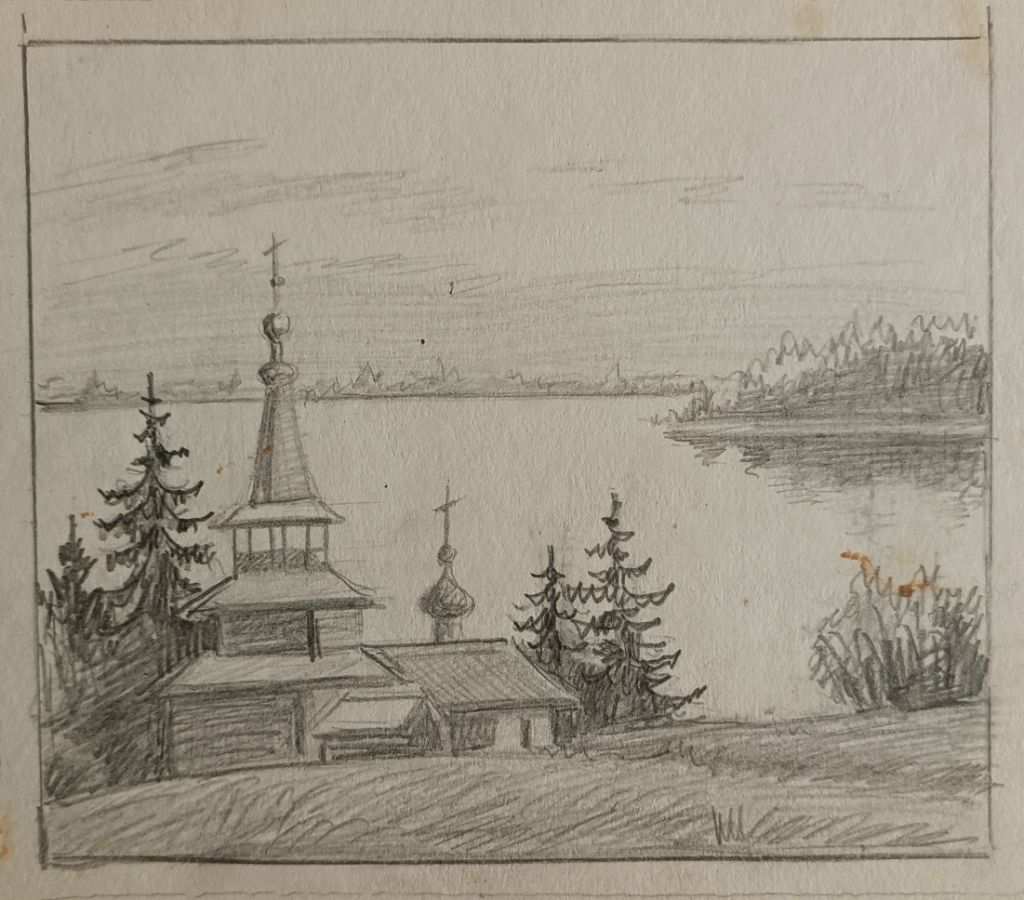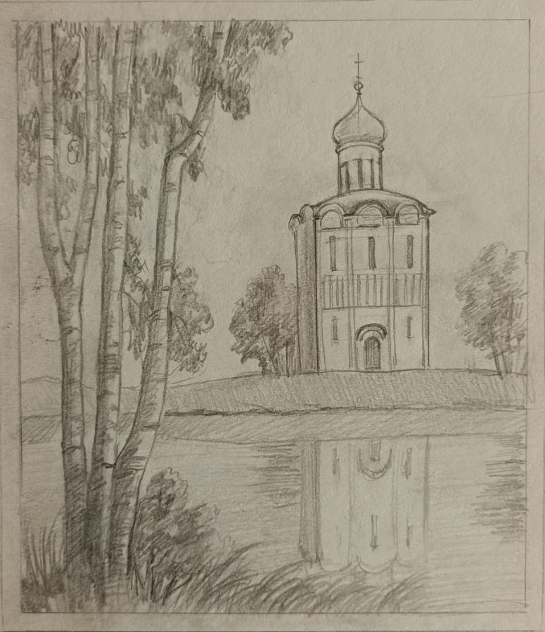 "Храм Покрова Пресвятой Богородицы на Нерли" бумага карандаш Попенков Я.И. 1980-е годы