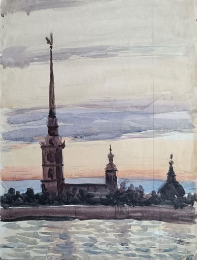 "Петропавловская крепость" бумага акварель Попенков Я.И. 1980-е годы