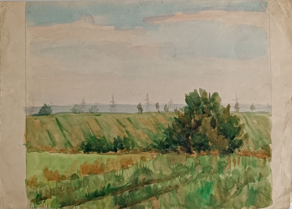 "Поле" бумага акварель Попенков Я.И. 1980-е годы