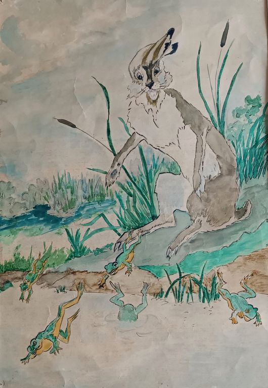 "Заяц" бумага акварель 1950-е годы